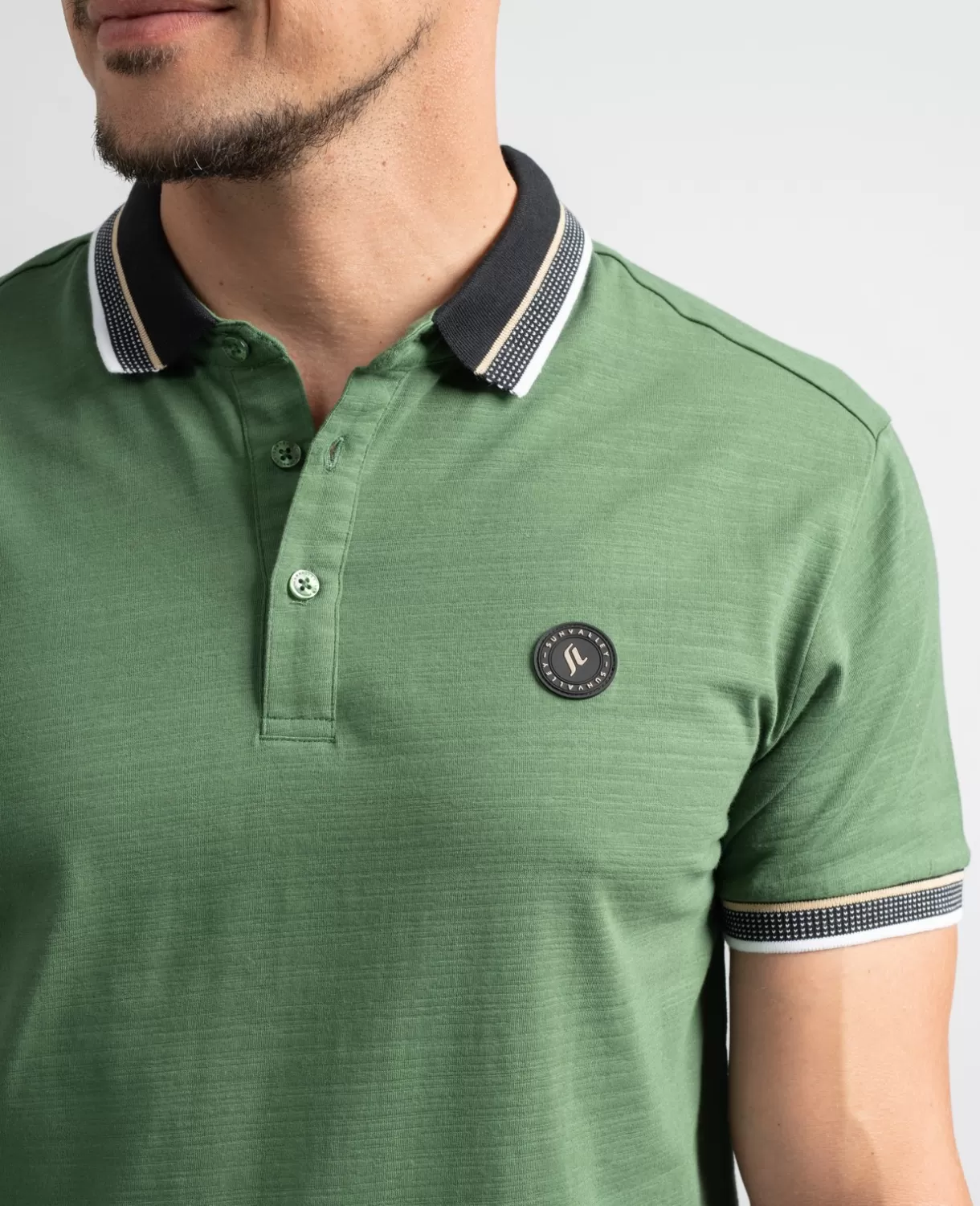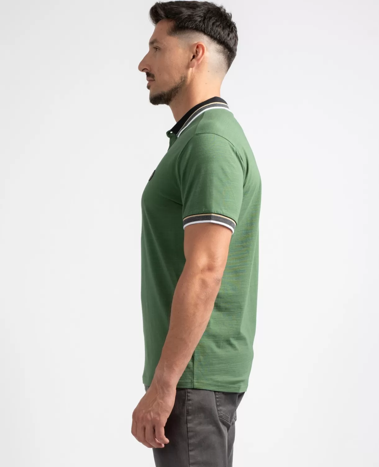 Slim fit and stretchy material for this timeless piece of the male wardrobe. Discreet logo on the chest and colored trim on the collar and sleeves.