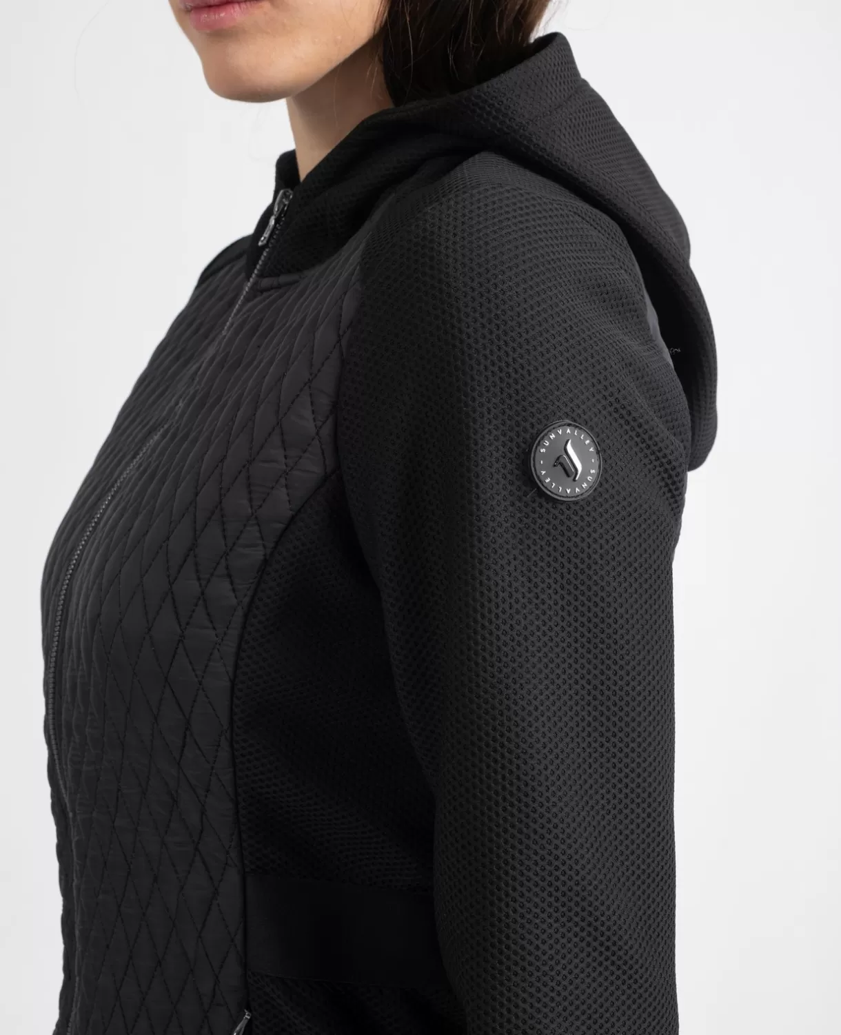 Deytag, our multi-purpose jacket thanks to its hood and blend of materials. Fitted to the body, its weave adds a touch of femininity.