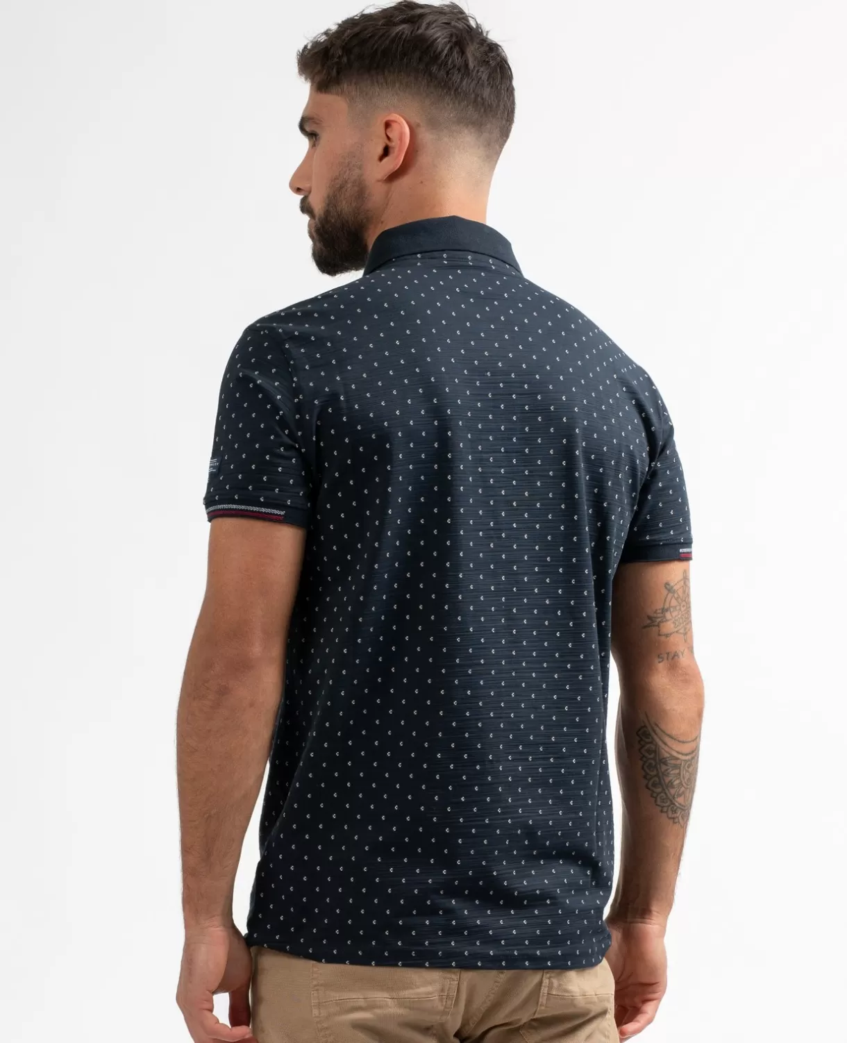 Slim fit for this short-sleeved polo in cotton and spandex. Its subtle print and contrasting collar add a touch of originality to this masculine staple.