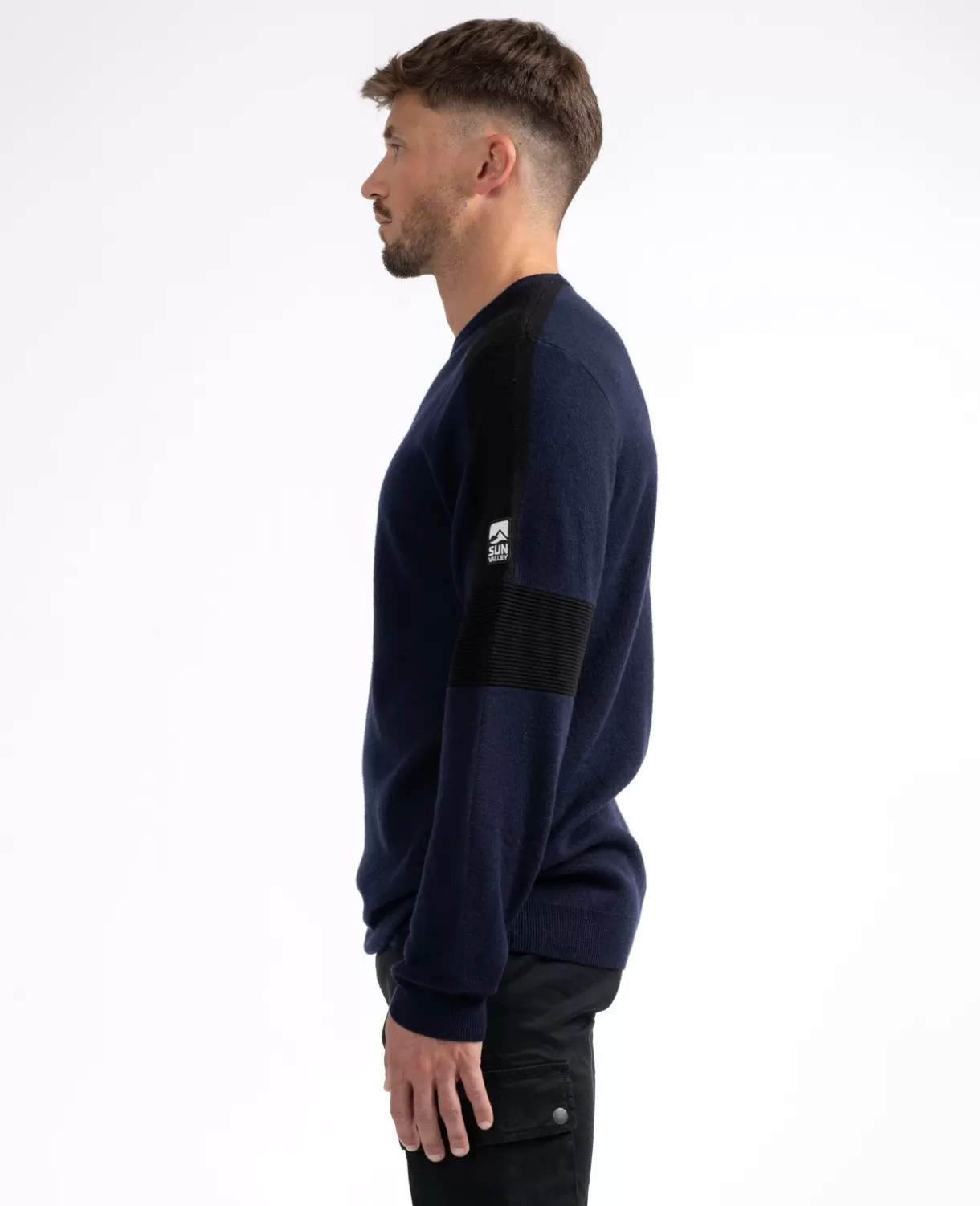 Sporty and casual look for this crew neck sweater. Lightweight, warm, and comfortable thanks to the merino wool, its relief knit gives it a unique style. Available in multiple colors.