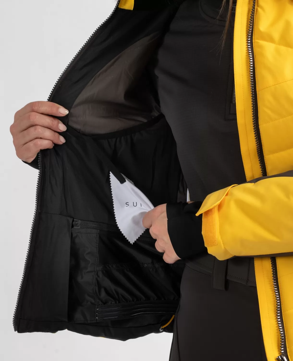 A jacket as feminine as it is technical: removable faux fur hood trim, fitted cut, stretch panels. It’s the ideal jacket for skiers who like to combine style and performance.